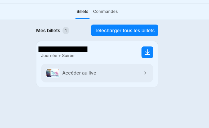 “Votre billet est déjà utilisé. Déconnectez vous sur vos autres appareils pour accéder au live”.