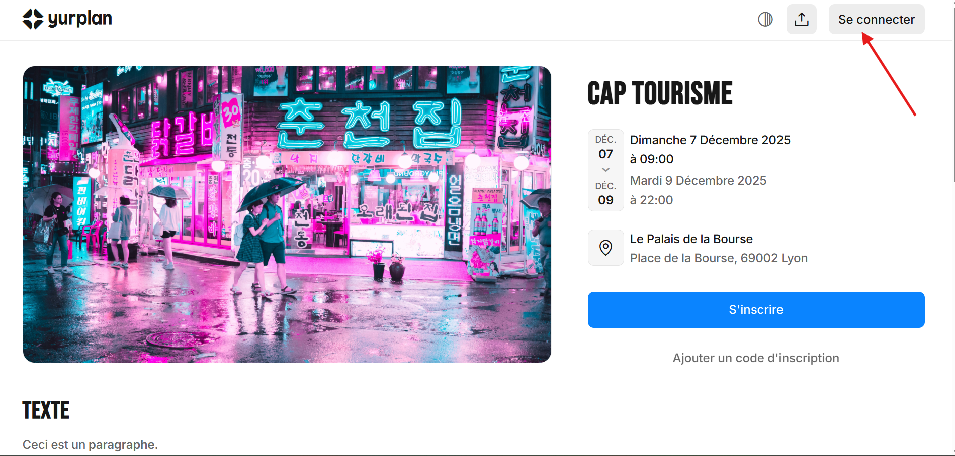 ⚠️ Cet accès n'est possible que si l'organisateur a configuré sa page organisateur en amont.